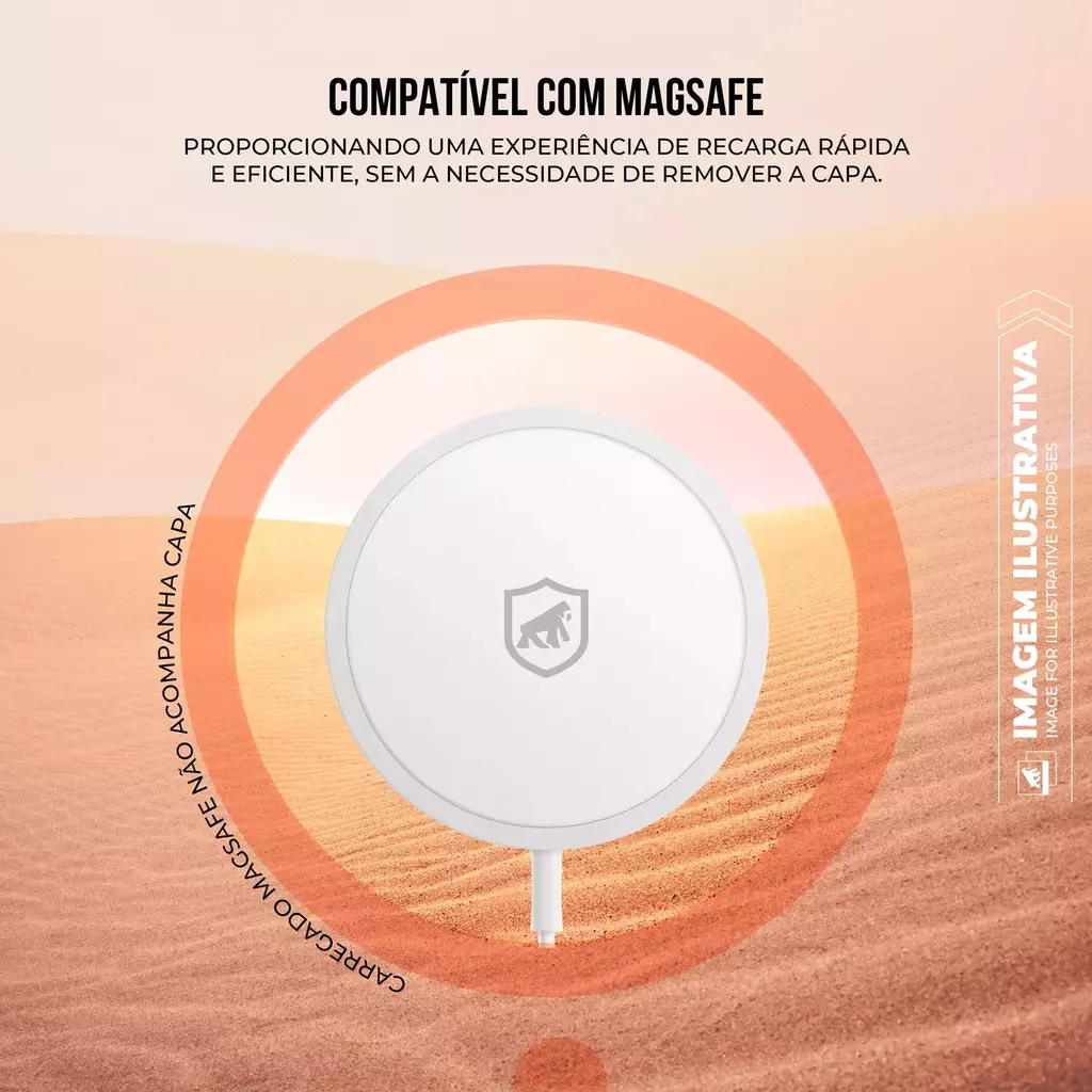 O design ultrafino se adapta perfeitamente às curvas do seu iPhone, mantendo a leveza e a ergonomia do aparelho. Além disso, a compatibilidade com a tecnologia MagSafe torna o carregamento magnético simples e prático, sem a necessidade de remover a capa. Ideal para quem está sempre em movimento e preza pela conveniência no dia a dia.